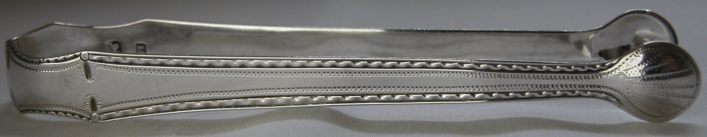 These tongs are lovely feather edged tongs with cut in shoulders and circular bowls and delightfully clear hallmarks for 1778/79.