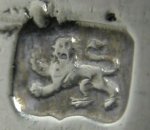 Simeon Coley I entered his first mark on 27th September 1761 as a small-worker. He also appears as a buckle-maker and entered several marks as a buckle-maker. Simeon Coley I was Hannah Northcote’s father. These tongs are a pair of cast silver sugar tongs. They have the maker’s mark in an oval, without a pellet which means they must be dated after 4th August 1780, which was when this mark was registered. Click on any picture to enlarge |