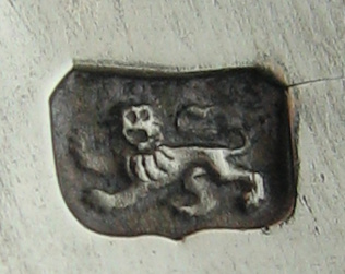 These are a pair of bright cut engraved tongs with a cut in shaped bow. They have pointed bowls with heavily engraved straight lines. They have an elaborate monogram to the bow. I have dated them at c1780.